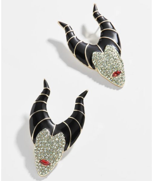 These earrings are made to look like Maleficent’s head with her fabulous horns and her face bedazzled in light green stones and dark red lips.