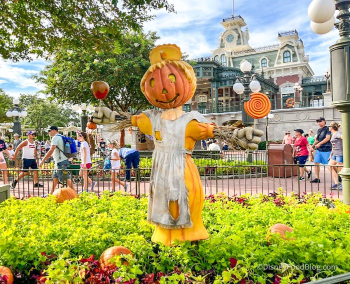 We spotted the very first Halloween decorations up in Magic Kingdom for the season in the form of PUMPKINS! And then, even MORE decorations popped up at the Main Street, U.S.A. Train Station, Guest Relations, and City Hall, too. We hope you’re ready for Magic Kingdom to be even spookier because NEW pumpkin decorations have arrived in the park!