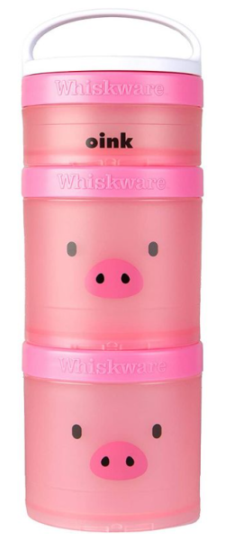How adorable is this stackable set from Target? Two piggies are nestled together with a smaller compartment at the top that exclaims “oink”! With this set you can bring three different snacks. When finished just pop each piece in the dishwasher to clean for next use!
