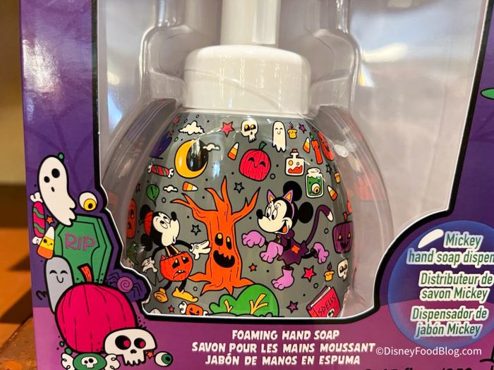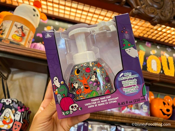 The soap dispenser is $19.99 and we found it at the Emporium in Magic Kingdom, but you can also get it online at shopDisney, along with lots of other Halloween merch.