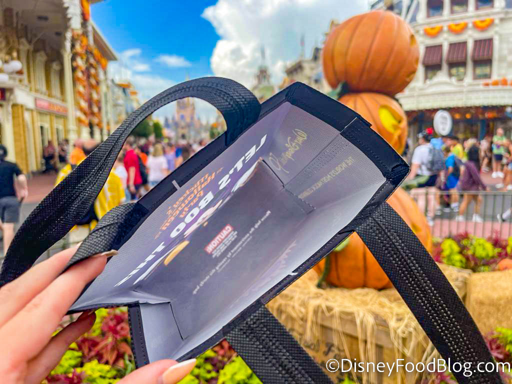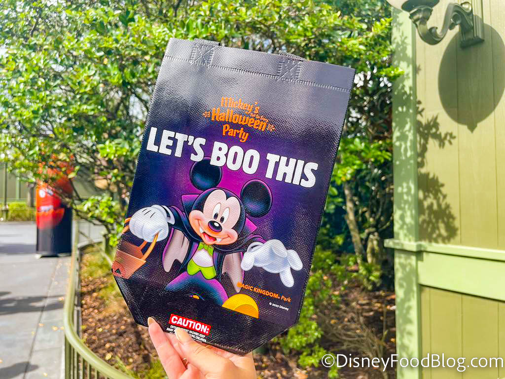 On this year’s bags, one side says “Let’s Boo This!” while the other has the 50th Anniversary logo. (You know, the logo that has been on seemingly EVERYTHING? 😂)