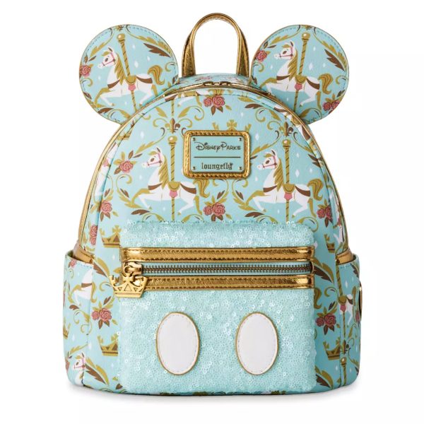 A Mickey Mouse: The Main Attraction Prince Charming Regal Carrousel Loungefly Mini Backpack is coming soon, too. It’s done up all in the Carrousel’s colors with the horses on it!