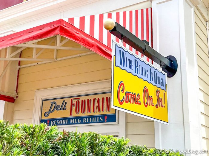 There’s another sign that notes that the Deli fountain is a refill station for resort mugs.