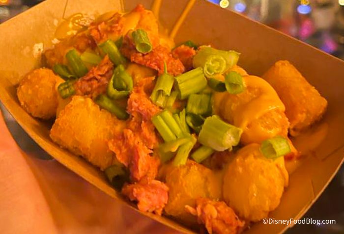 If you want to try these tots, they are available at the Friar’s Nook for $11.49. Note that these tots are ONLY available during Mickey’s Not-So-Scary Halloween Party so you will need a party ticket in order to try them out. If this situation changes, we will be sure to let you know. Looking for the perfect dessert to follow up those tots? Head to the nearby Sleepy Hollow Refreshments and try the Worms and Dirt Funnel Cake!