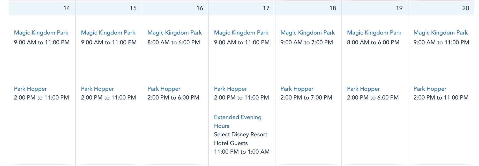 Magic Kingdom Park Hours