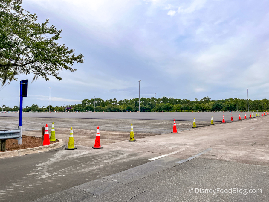 There’s a large portion of the EPCOT parking lot that’s being refurbished. It looks like they’re repaving the asphalt, which will hopefully mean a smooth ride in the future!