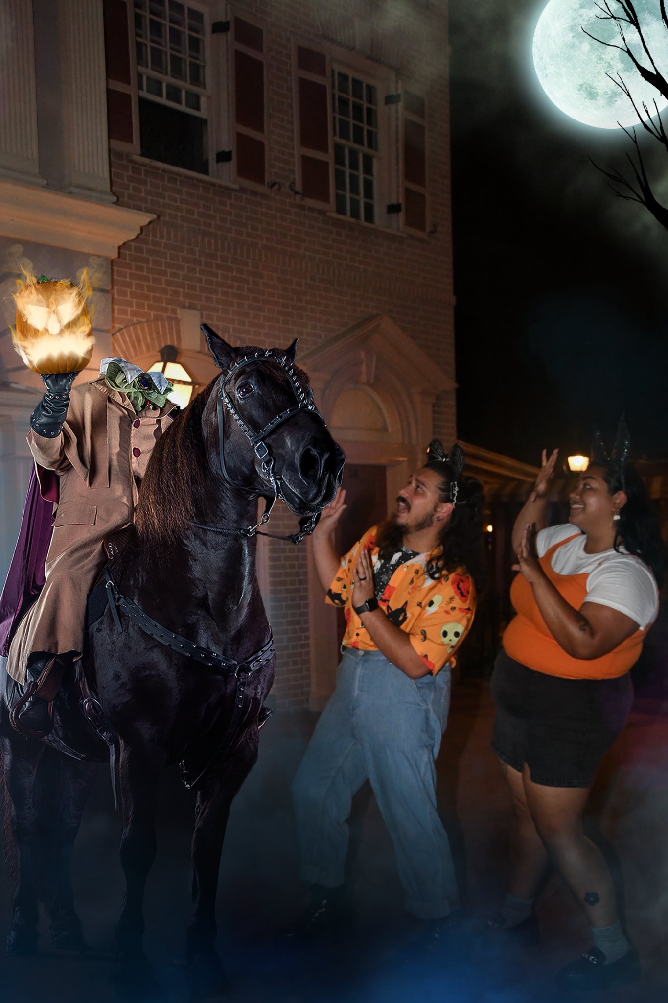 This enchanted pumpkin is on fire! Don’t lose your head like the Headless Horseman as you pose for this Magic Shot!