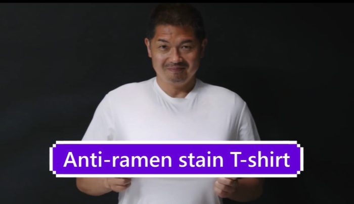 As we look to the skies and wonder why we’ve lost another article of clothing to the nefarious means of saucy splatters, somewhere in Japan, geniuses gathered together to combat the messy staining nemesis with a stain-resistant shirt. The Japanese clothing brand Ziorich has felt our pain as we’ve tossed clothing away that has been riddled with the aftermath of eager eating. Simply, yet appropriately dubbed “Ramen T-Shirt” this shirt’s anti-stain capabilities promises to become our new favorite ‘Ohana dining accessory. And yes, we know ‘Ohana noods aren’t ramen but they can make the same t-shirt stain impact!