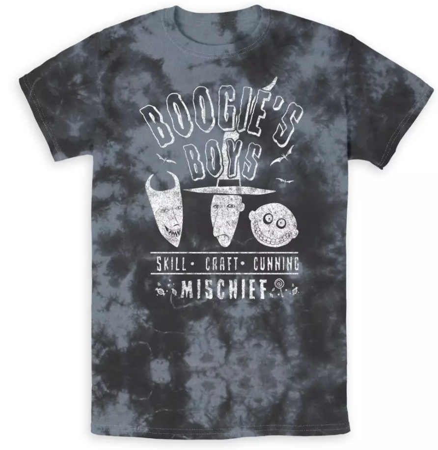 Looking for something a little more frightening? Channel this mischievous trio who proudly declare themselves to be Boogie’s Boys! Lock, Shock, and Barrel’s faces are printed above their motto on this adult ribbed neck tee.