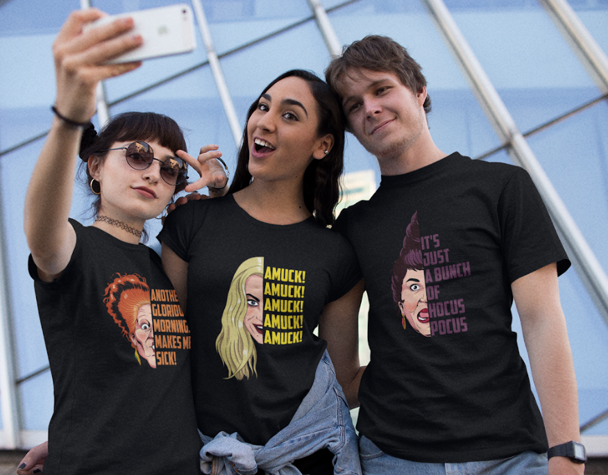 With the new Hocus Pocus sequel coming out soon, we had to include some shirts to rep our favorite witches! We’ve created a design for each of the Sanderson sisters, each featuring one of their iconic quotes. Are you more of a Winifred, Mary, or Sarah?