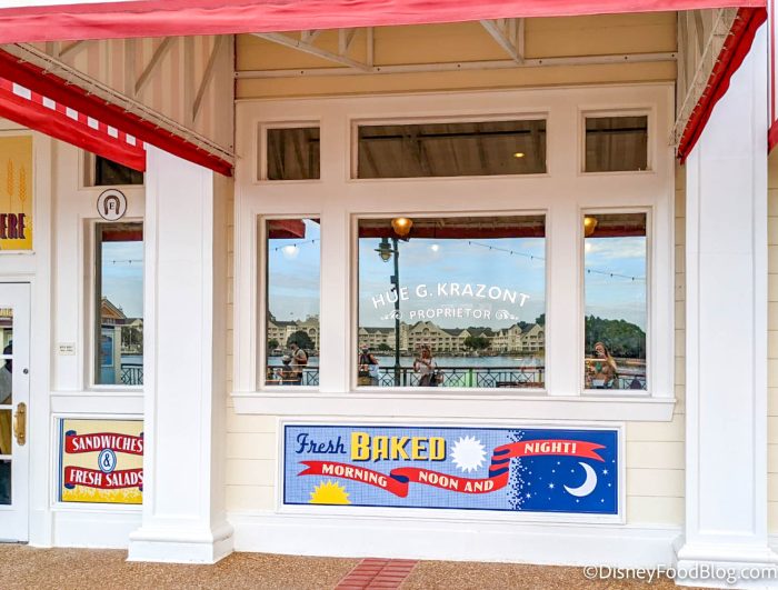 There are also signs on the outside noting that the Deli Fountain is a resort mug refill station, and plenty of bakery puns (they’re rolling in dough).