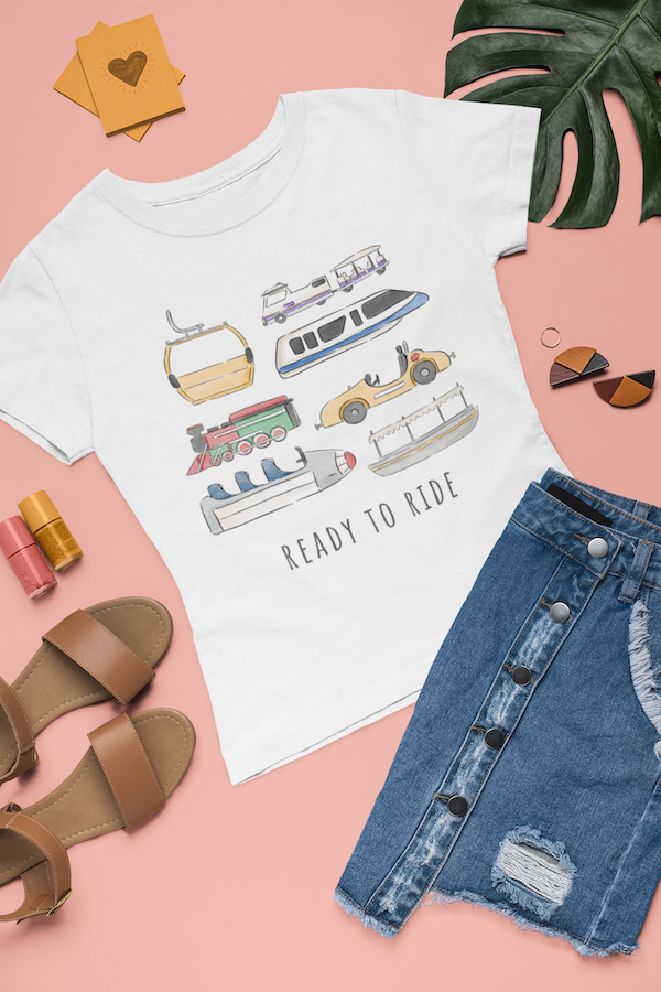 These DFB-exclusive shirts feature many of the ride vehicles we love at Disney World!