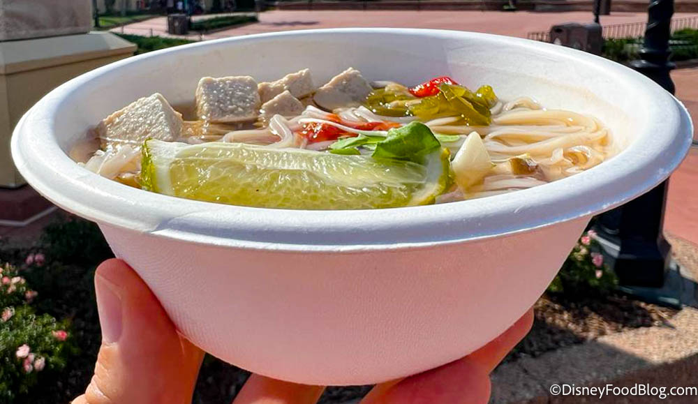 2022-wdw-epcot-international food and wine festival-the noodle exchange-booth-returning-Tofu Pho with mushrooms and Thai basil-2 By Sara McOmber Leave a Comment