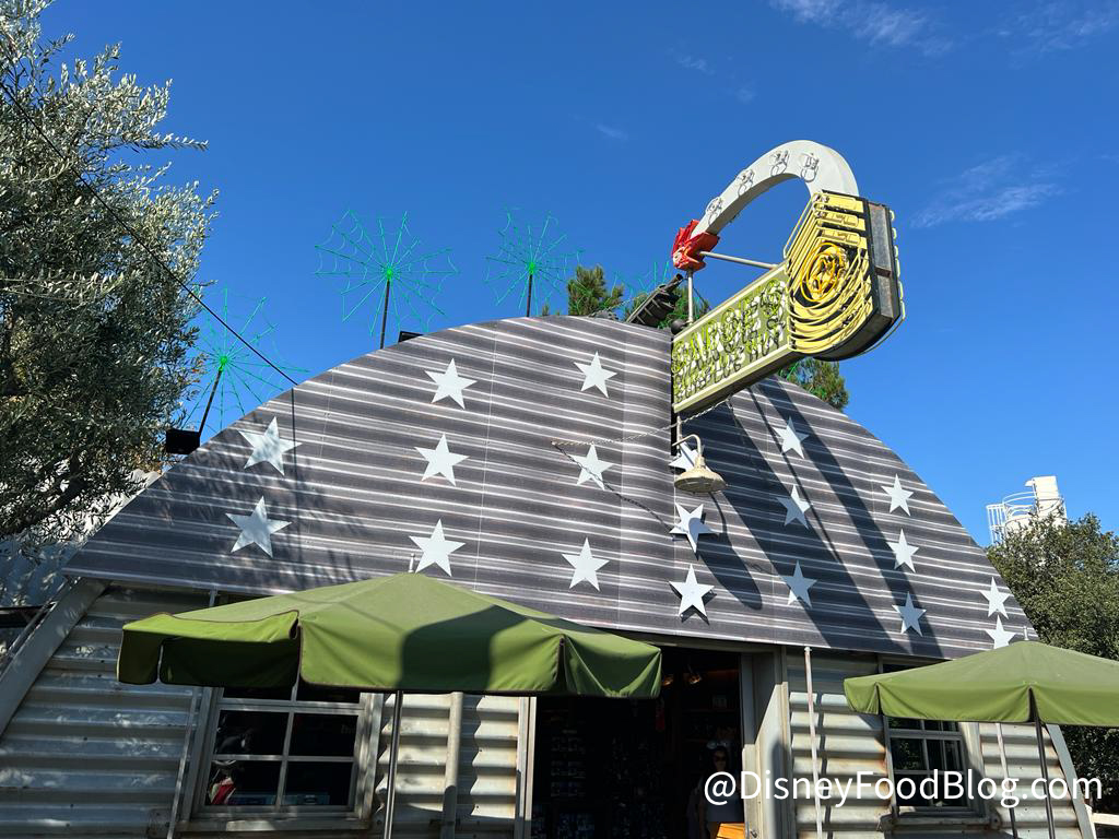..and Sarge’s Surplus Hut is in on the Halloween action too with green spiderwebs above the building! Ghost cars are also hanging out above Taste-In Fuel, and we can’t get over how cute they are.