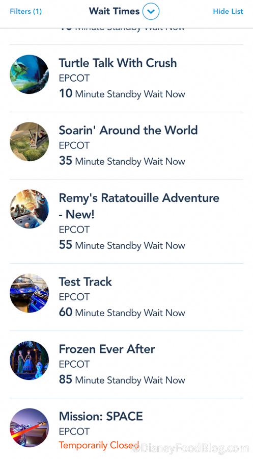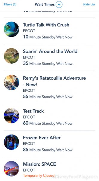 This theory also seems to be true because the wait times in the other parks are still relatively high right now. In EPCOT, Test Track and Frozen Ever After were still an hour or more…