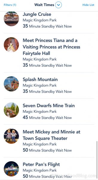 We were curious to see if other rides were experiencing this same phenomenon — and they WERE! We checked My Disney Experience and were blow away with how low the wait times were for Magic Kingdom.