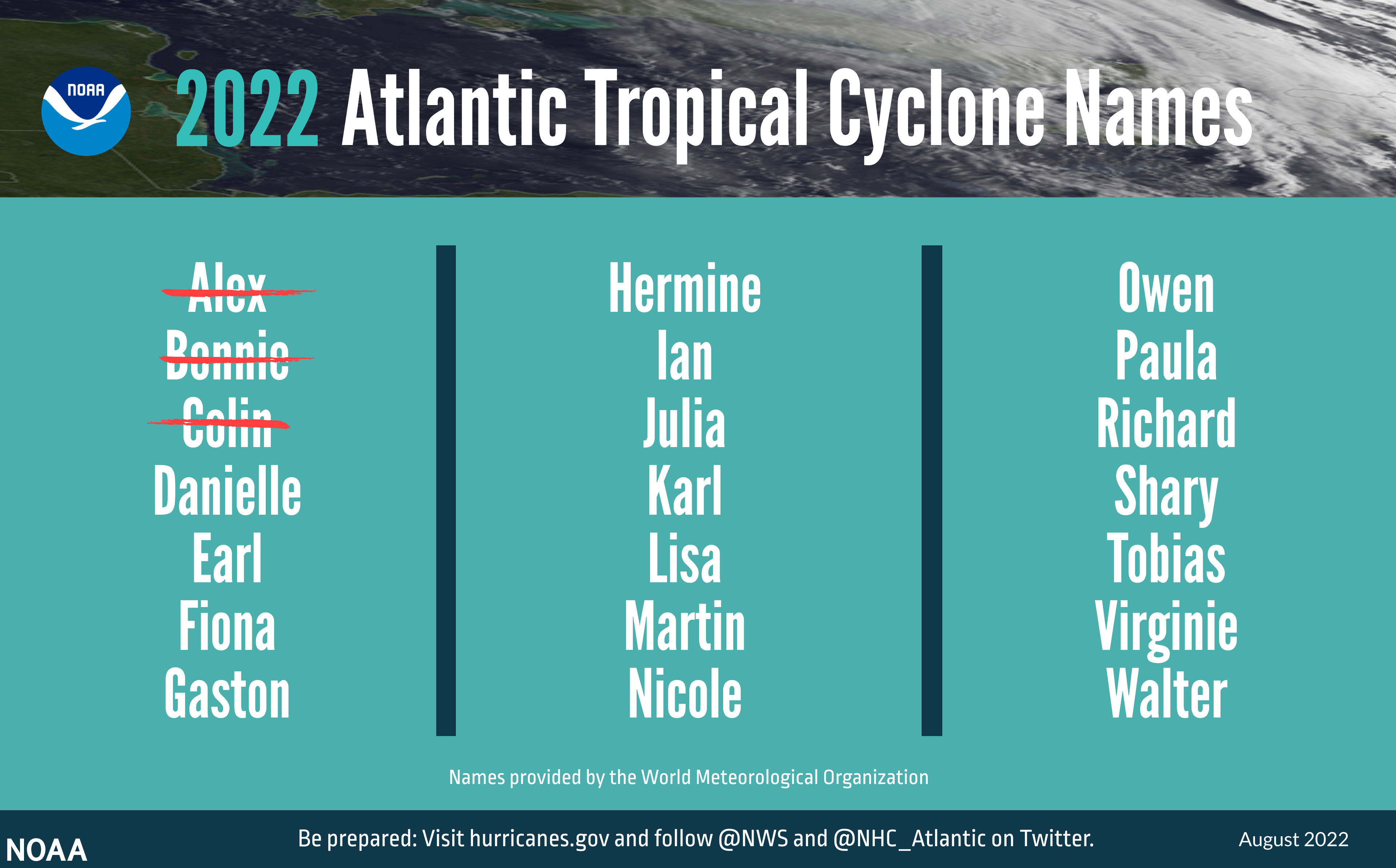 The names have already been picked out for this year’s storms though more names could be created if needed.