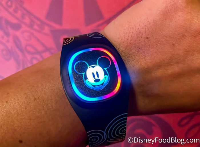 MagicBand+ launched in Disney World a few weeks ago, and this week we noticed a special feature when guests visit the new rides in EPCOT — it lights up! At the Guardians of the Galaxy: Cosmic Rewind ride exit, the band lit up and vibrated…