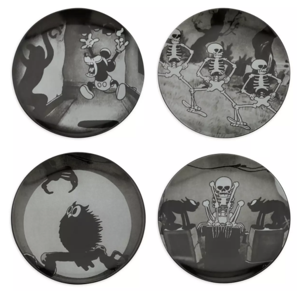 This 4-Piece Skeleton Dance and Haunted House Plate Set is $49.99, and each ceramic plate features a different scene from Walt Disney’s Silly Symphony, The Skeleton Dance, and The Haunted House.