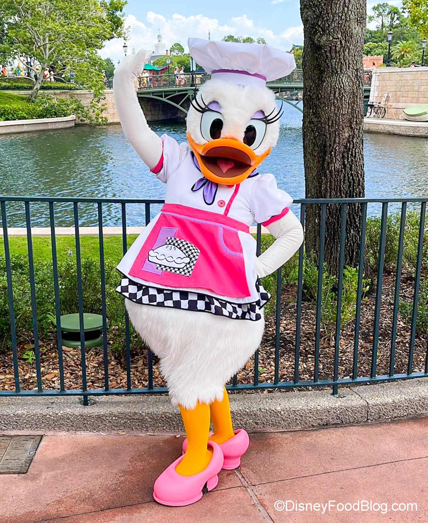 We also spotted a unique character at EPCOT recently! Daisy Duck was out meeting and greeting guests in her chef’s outfit.
