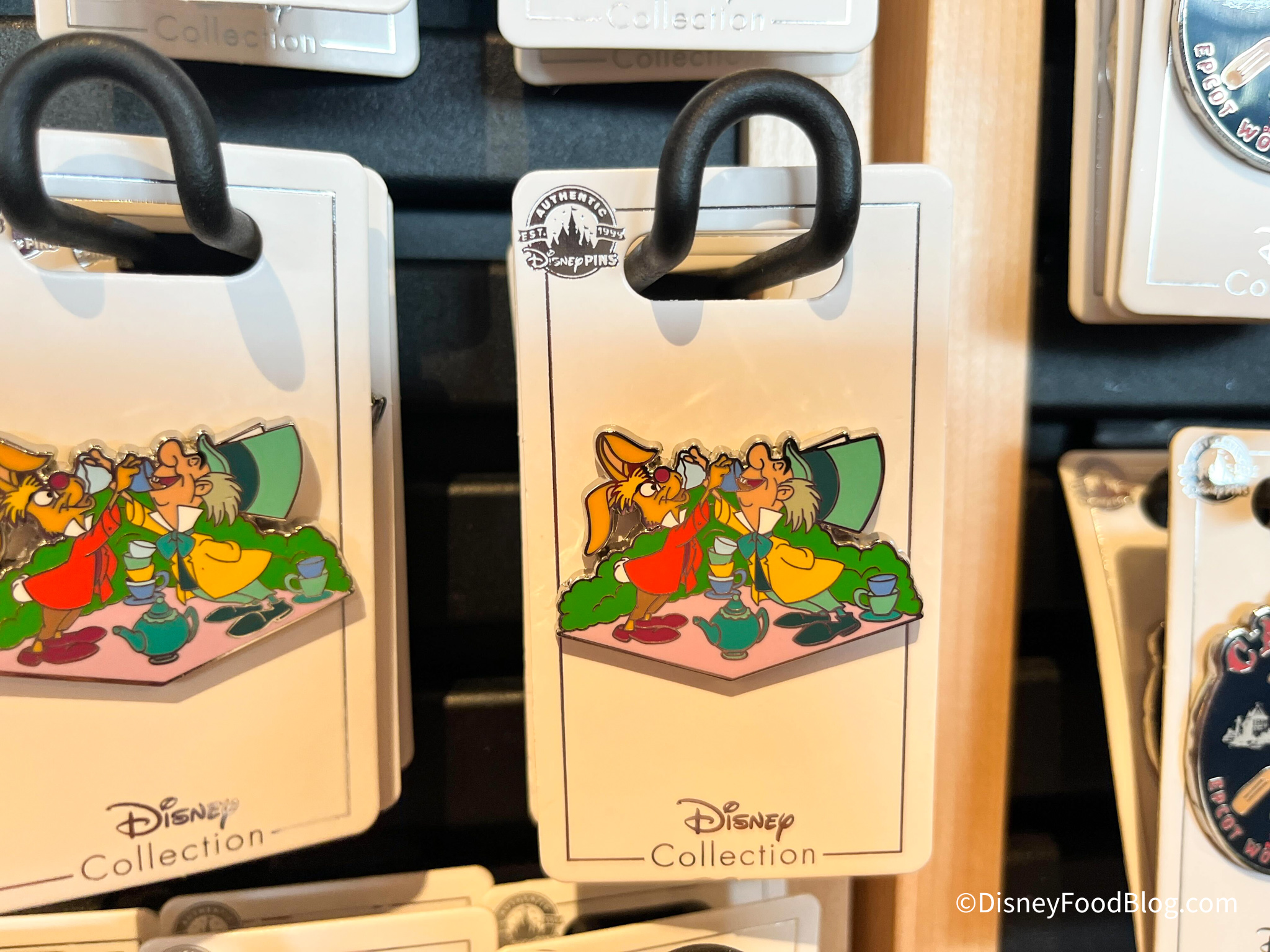 On the hunt for new pins to add to your collection? We saw a couple new ones at Creations! First up is this Alice in Wonderland Mad Hatter and March Hare Pin for $12.99. The pin shows the Mad Hatter and March Hare enjoying a tea party.