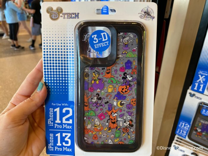At the Creations Shop, we spotted some Halloween merch! First up, we saw some Halloween phone cases for $34.99 each. There was this case with an all-over Halloween print…