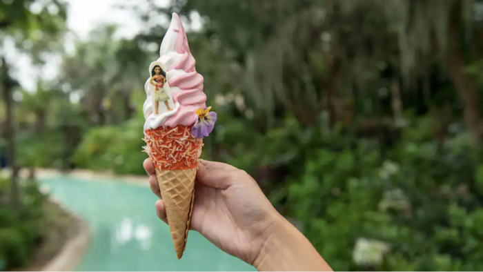 - The Moana Cone: Coconut soft-serve and DOLE Whip strawberry swirled into a chocolate coconut dipped waffle cone with white chocolate and an edible flower (New)