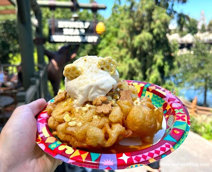 Right now, you can get a Honey Funnel Cake from Hungry Bear Restaurant in Critter Country.