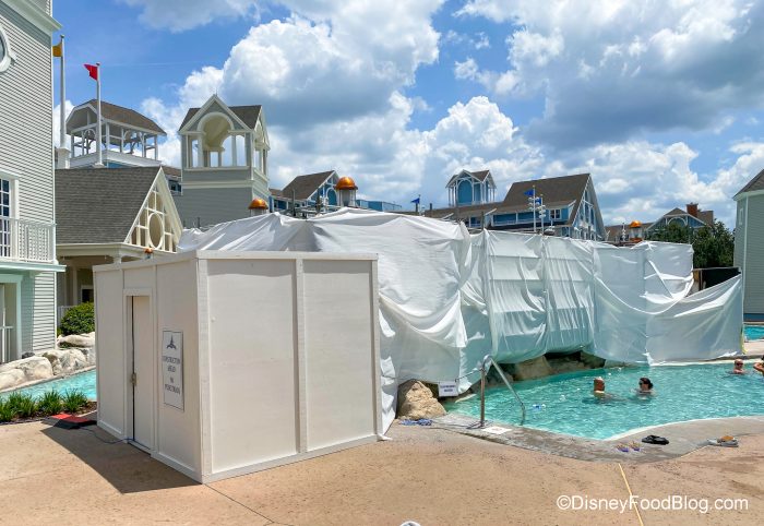 While the pool is still open, just keep in mind that the construction walls are up, making things a little less than appealing from a visual standpoint in some areas.