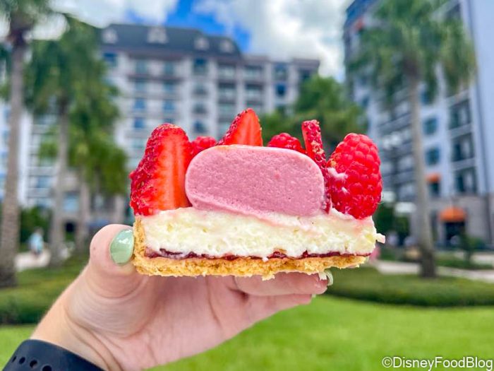 Over at Le Petit Café at Disney’s Riviera Resort, you can grab the Aurora Fruit Tart! The treat has Diplomat Cream, Raspberry Mousse, and Fresh Berries. And you guys…this treat is just as enchanting as Sleeping Beauty!