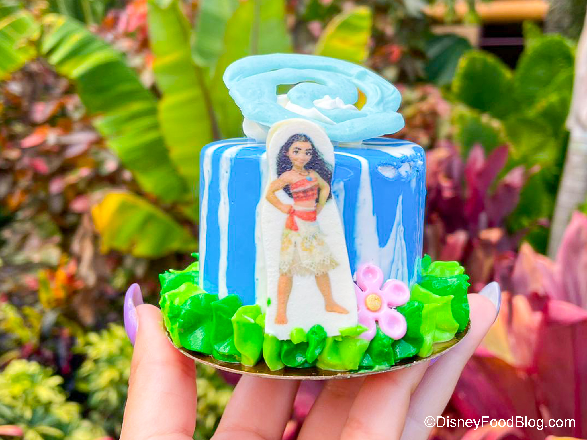 Our latest stop takes us to Disney’s Polynesian Village Resort to snag the Moana Mini Cake, available at Kona Island Coffee Bar and Capt. Cook’s!