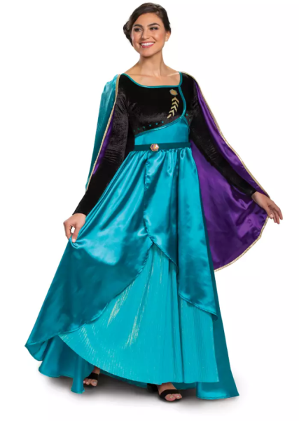 Feel like you just stepped into Arendelle castle with Anna’s queen ensemble, which features a gown in her signature teal and a detachable royal purple cape. shopDisney also carries Anna and Elsa wigs to finish off your look. With these costumes you might get mistaken for the real deal!