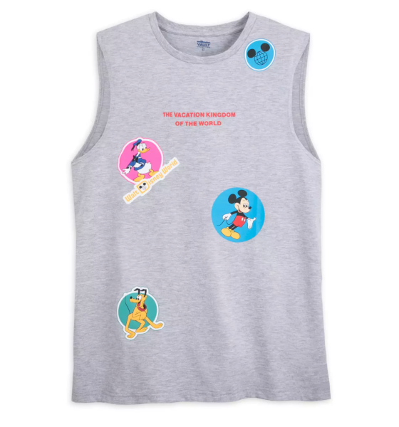 If you’re a fan of sleeveless shirts, the Walt Disney World Retro ”Stickers” Sleeveless T-Shirt for $34.99 has got you covered.