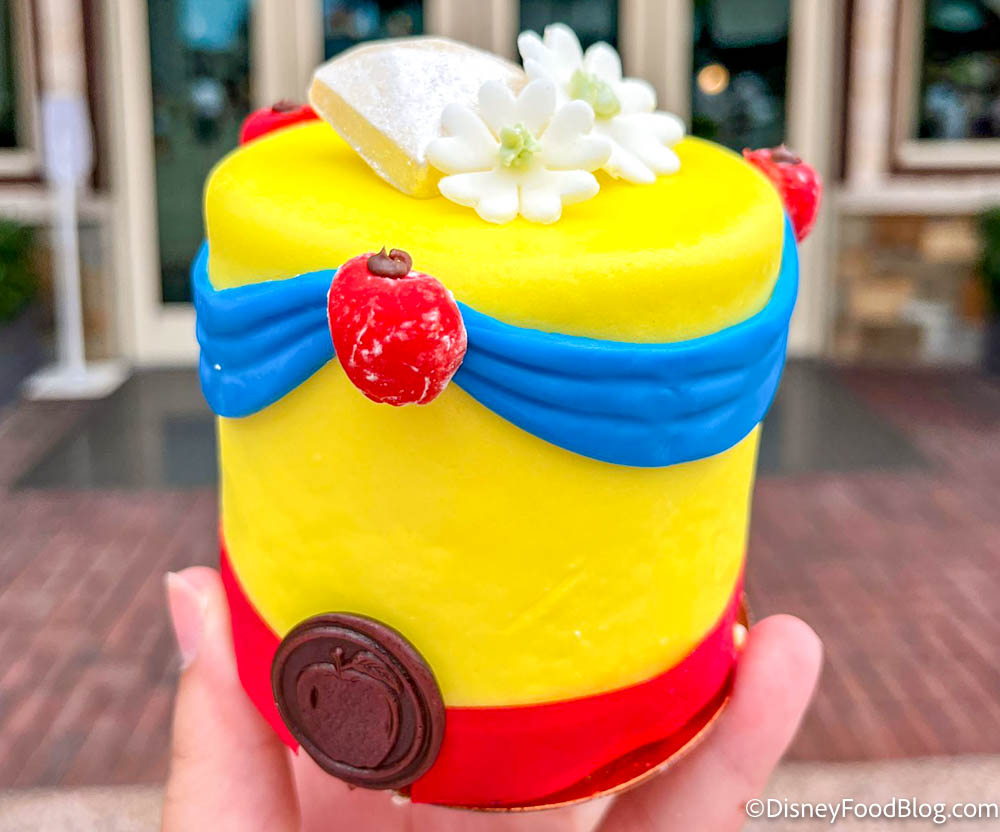 2022-wdw-disney springs-amorette’s patisserie-world princess week-snow white 85th anniversary mini petit cake By Sara McOmber Leave a Comment