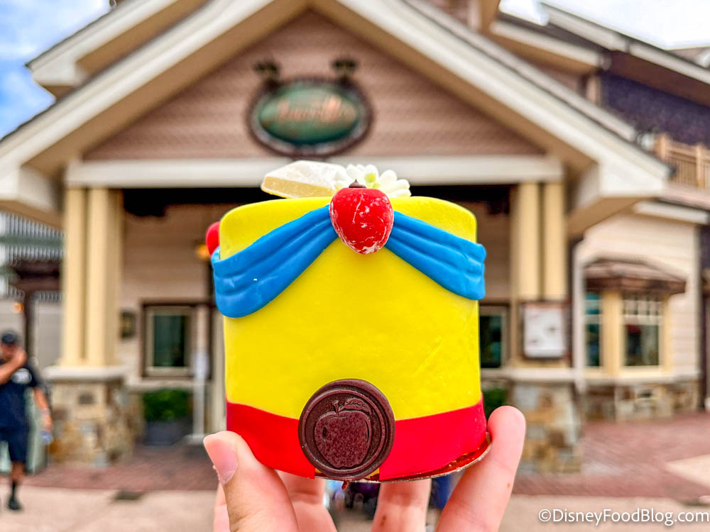 2022-wdw-disney springs-amorette’s patisserie-world princess week-snow white 85th anniversary mini petit cake-7 By Sara McOmber Leave a Comment