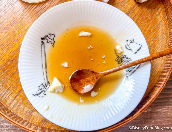 Under the “today’s dessert” section, you’ll find an item with a Mickey symbol next to it. Okay, you have our attention!