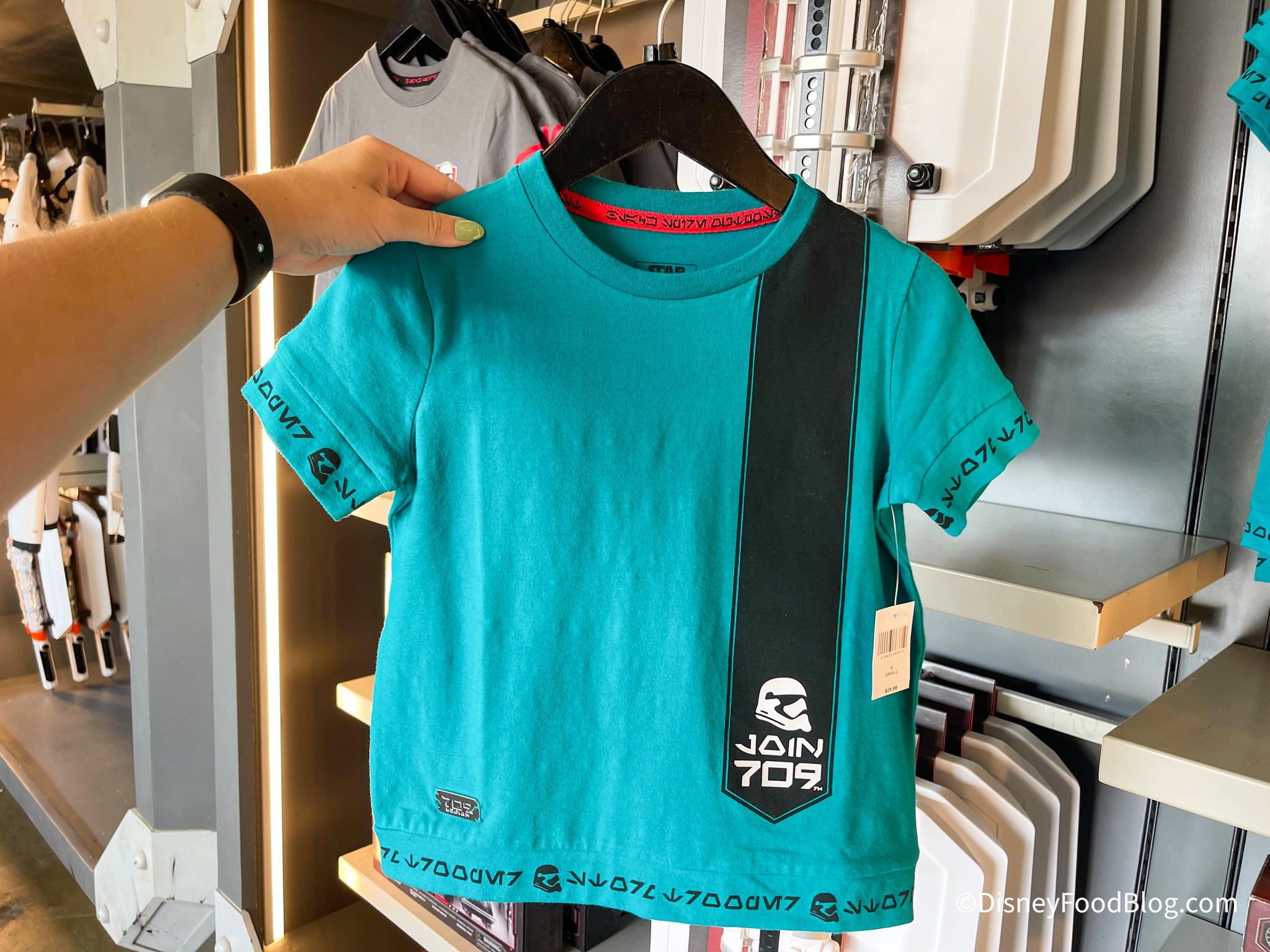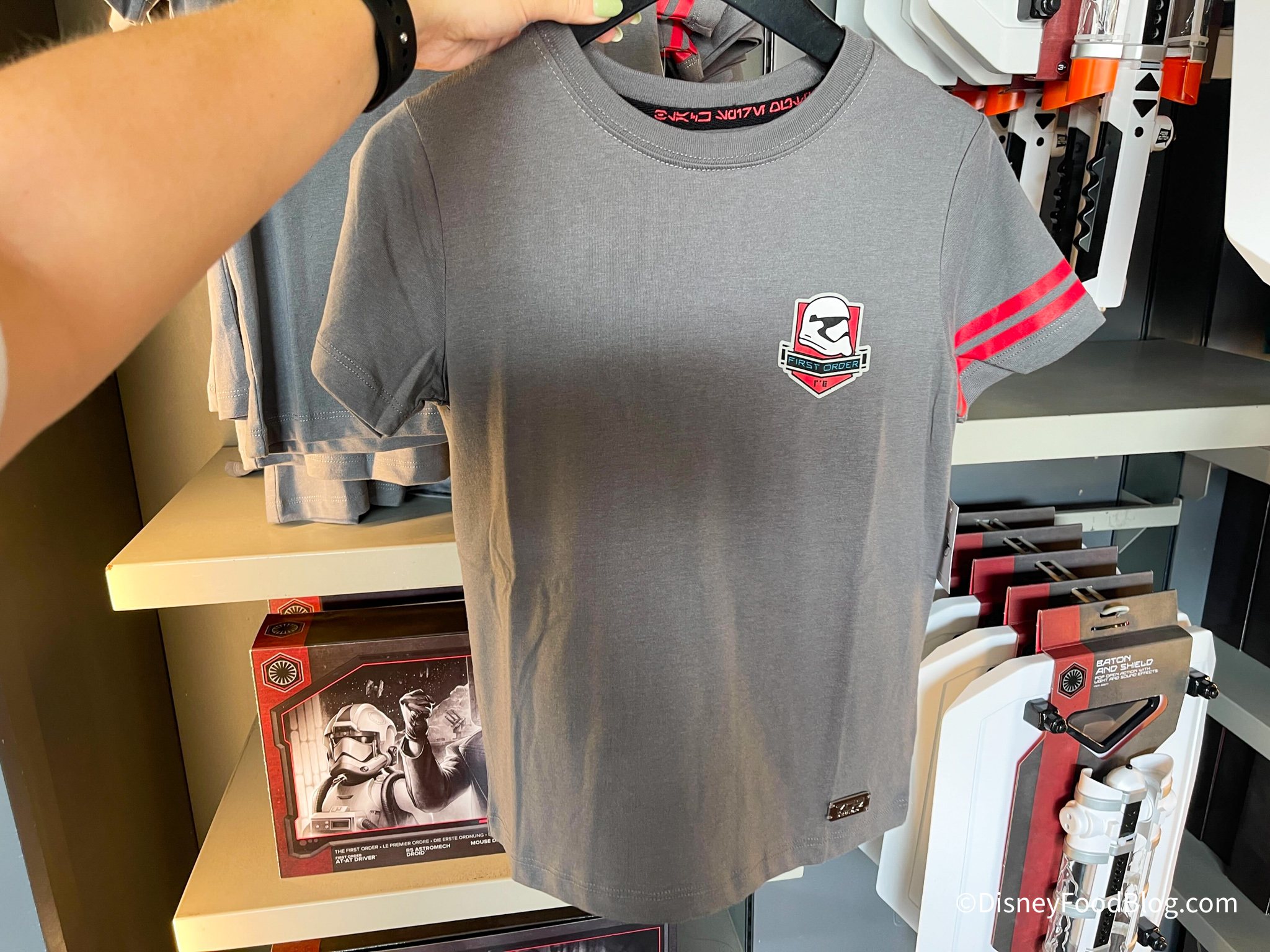 If you’re looking for the perfect place to buy some merch that proves your allegiance to the First Order, then this is perfect. We saw two new shirts! First was this blue shirt for $29.99…