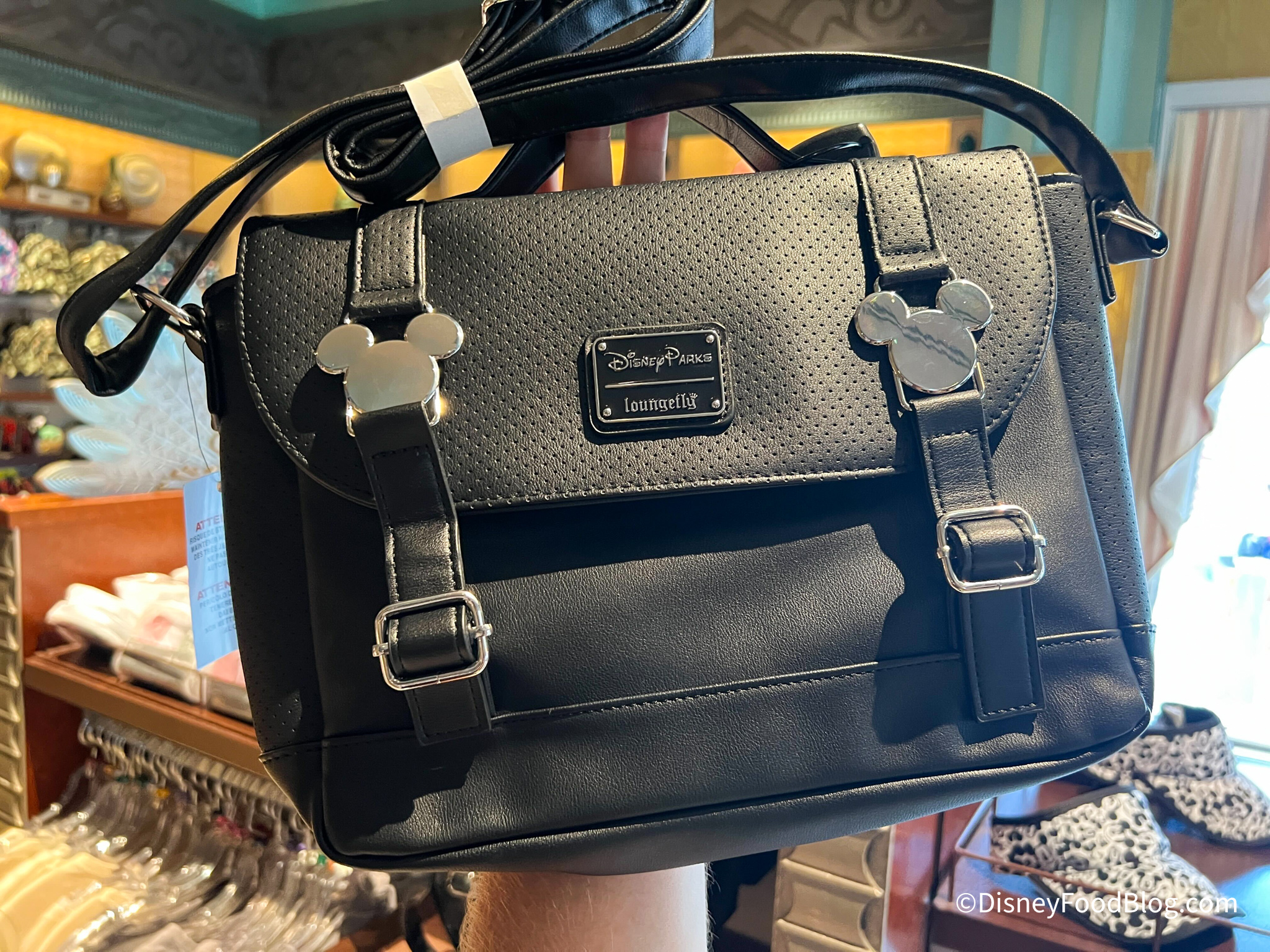 It’s an understated black bag with two silver Mickey Mouse accents. We’ve seen this in Disneyland, as well, and it is available for $70.