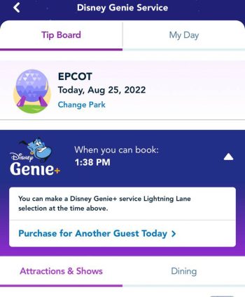 2022-wdw-mk-genie+-genie plus-when you can book new genie banner time change my disney experience app screenshots By Sara McOmber Leave a Comment