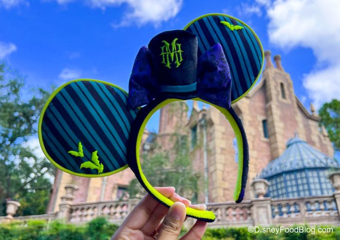 The headband has “The Haunted Mansion” embroidered on it, along with more bats!