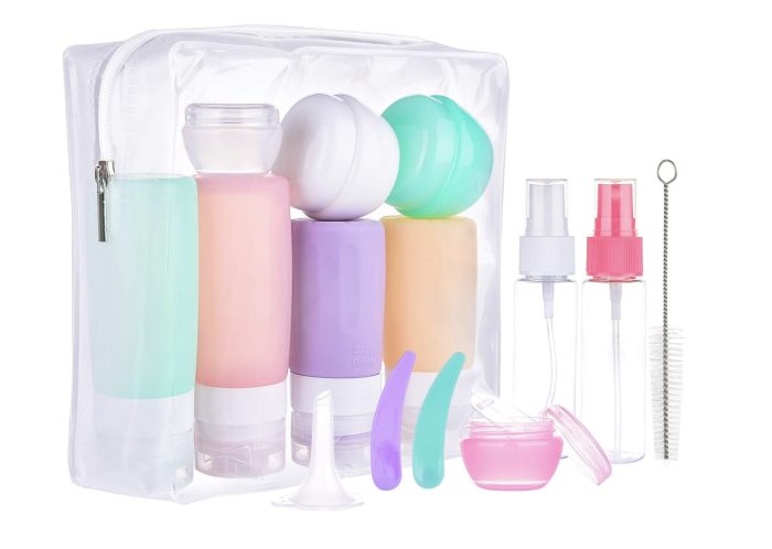 By using this set, you can just put some of your ordinary shampoo, conditioner, body wash, etc. into the bottles and take them with you without having to purchase travel versions. Then, when you get home, you can just clean these guys out and use them on your next trip! They are TSA-approved and come in a clear carrying case, as well. This set has 4.6 stars from 8, 890 reviews and is currently on sale for $14.99, down from its previous price of $22.58.