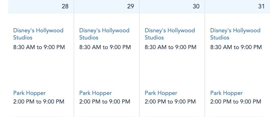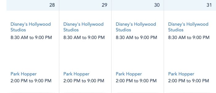 Disney’s Hollywood Studios also has the same hours every day next week as it is open from 8:30AM-9PM from August 28th-31st…