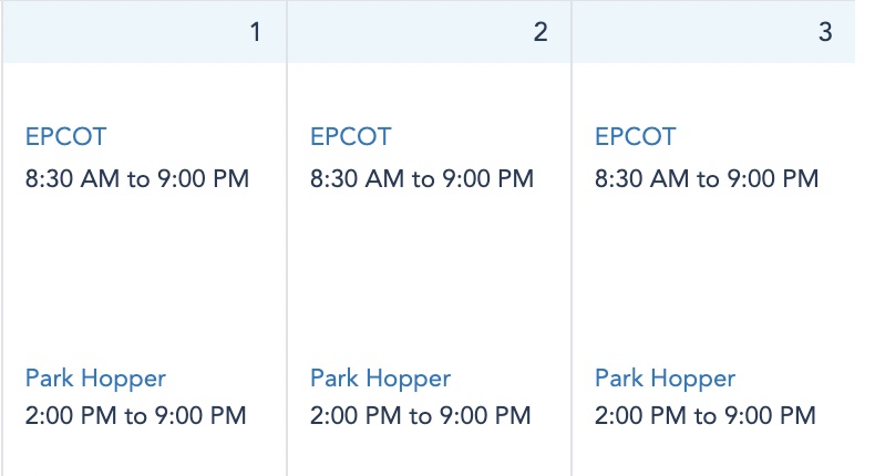 EPCOT Park Hours