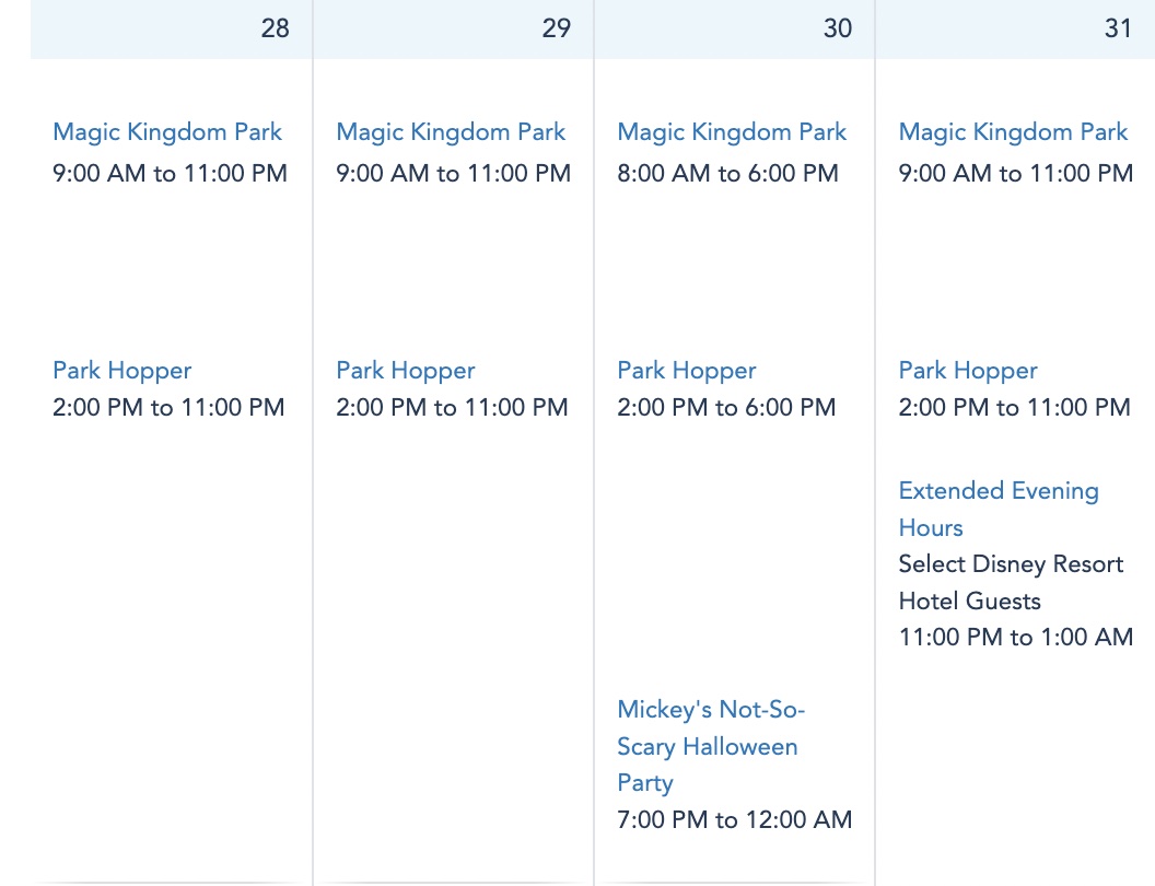 On September 2nd, however, the park will once again have reduced hours from 8AM-6PM for Mickey’s Not-So-Scary Halloween Party.