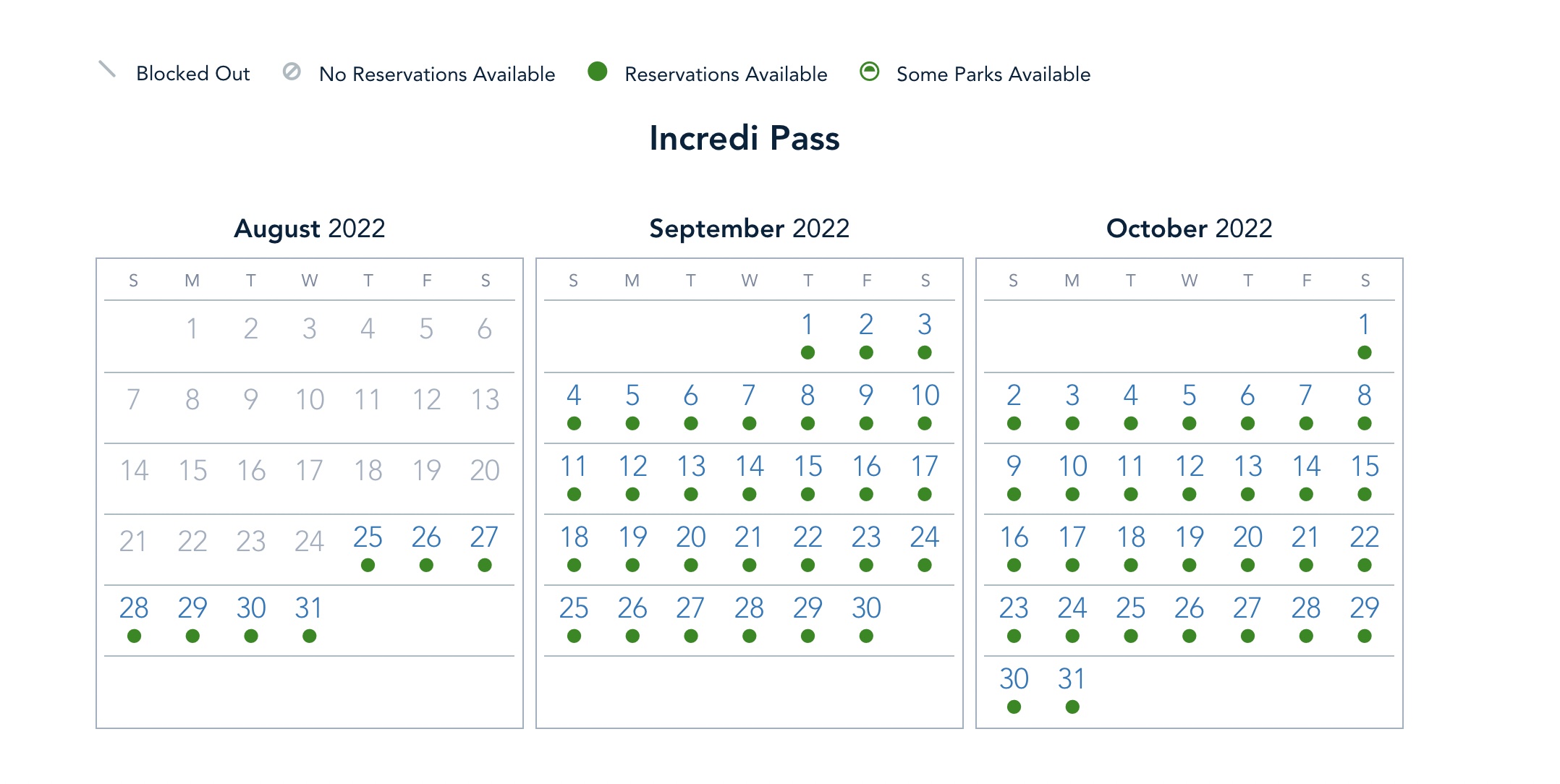 First up is the Incredi Pass. The Incredi Pass has wide open availability for next week (and for lots of weeks after that, too)!