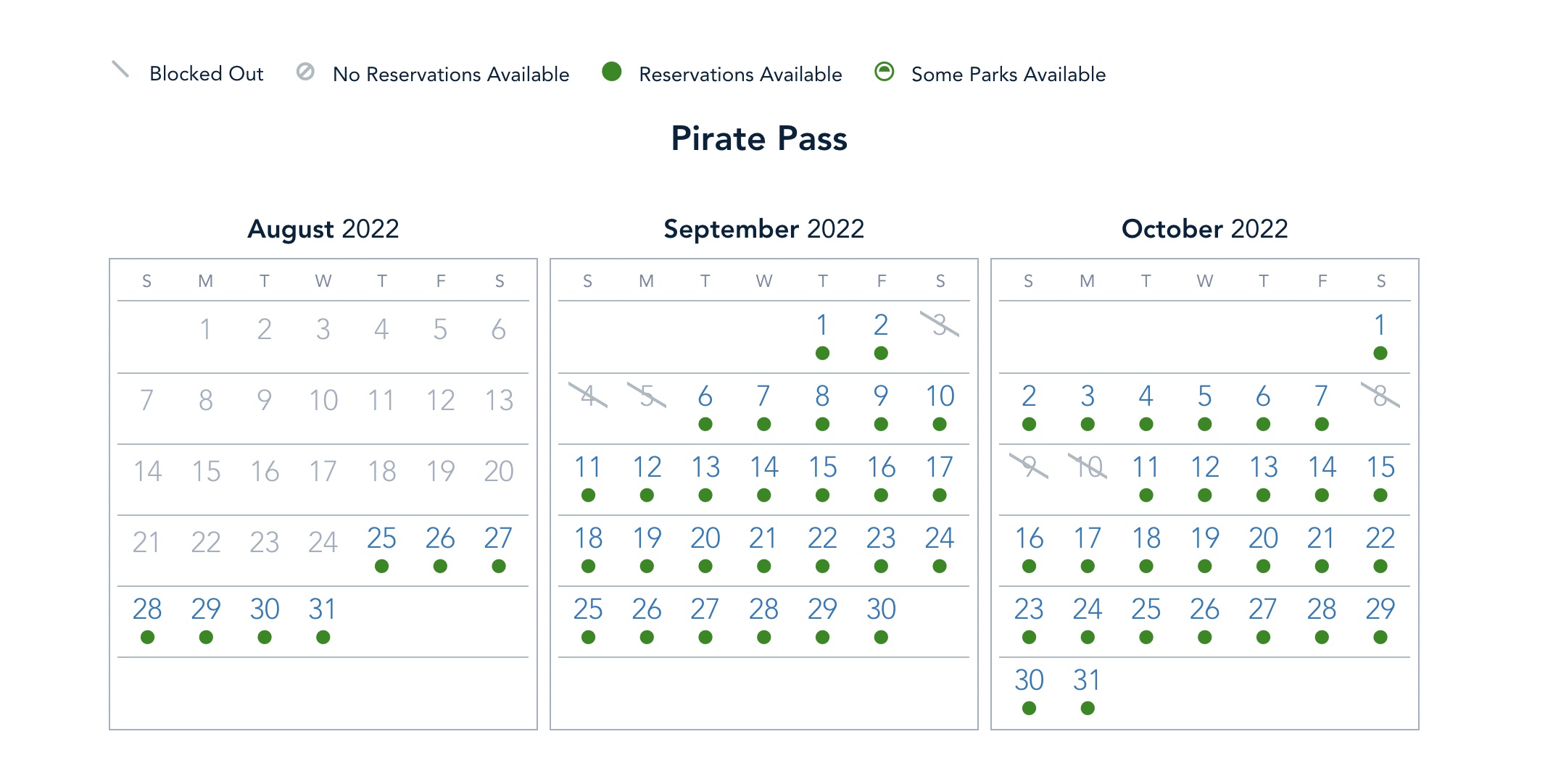 The Pirate Pass has open availability until Saturday, September 3rd when guests with that pass are blocked out and not able to go to the parks. This blockout is due to Labor Day the following Monday and individuals with the Pirate Pass aren’t able to visit the parks from September 3rd-September 5th.