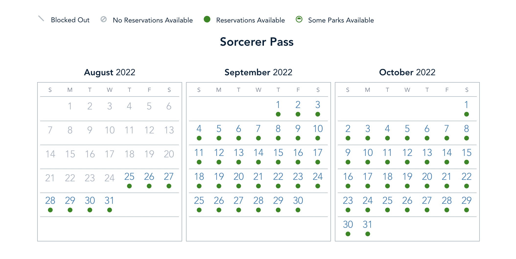 The Sorcerer Pass also has wide open Park Pass Reservation availability for next week.
