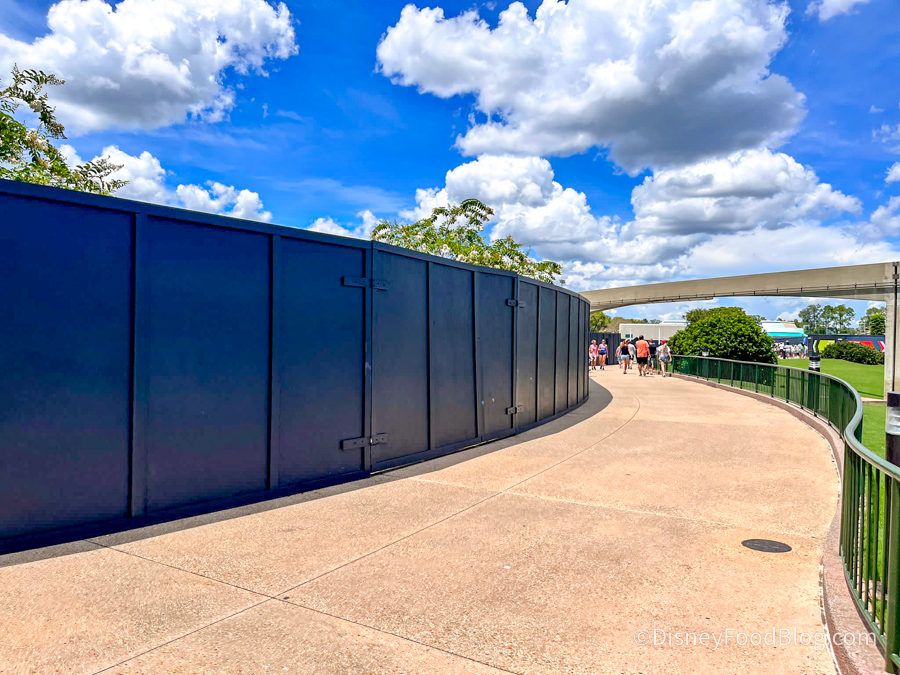 Additional walls have gone up in the center of EPCOT as Disney works on building what will eventually become the new CommuniCore Hall and CommuniCore Plaza areas.