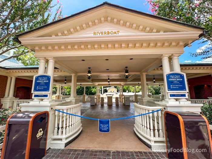 The relaxing and often-underrated Liberty Belle — the Liberty Square Riverboat — closed for refurbishment on August 23rd, 2022. We typically see this happen around the same time each year as the boat goes through routine maintenance.