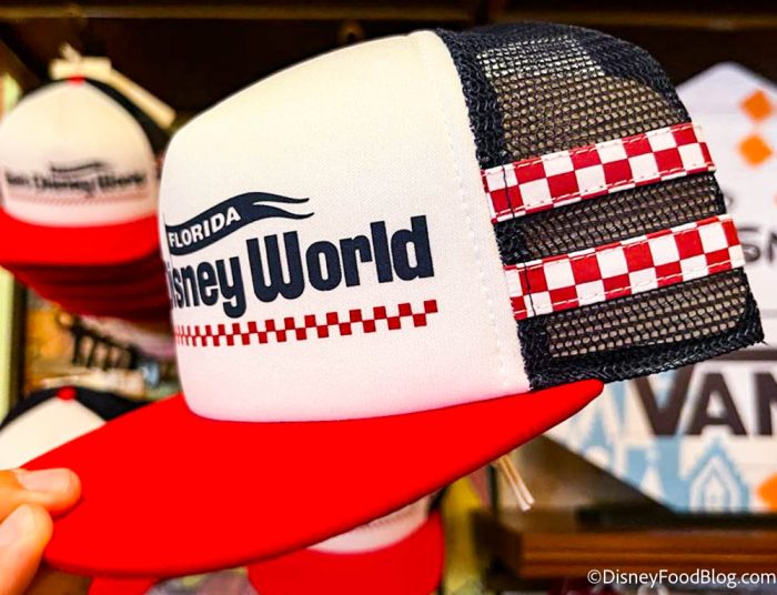 If you’re not a bucket hat person, there’s also a flat-billed hat with a retro Disney World logo on the front, complete with a Florida flag.